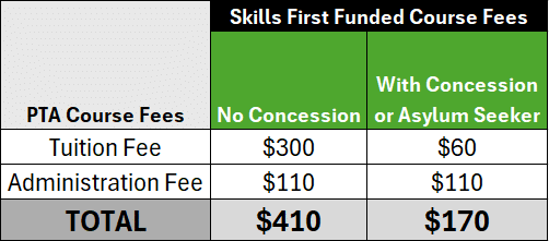 *Aboriginal and/or Torres Straight Islanders pay the course Administration Fee but do not pay any Tuition fee.